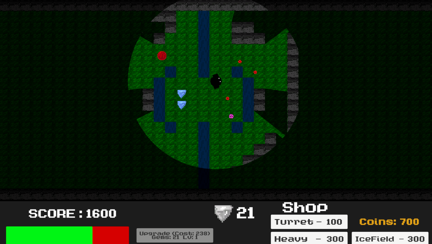 Make it to wave 10 and fight the boss at their end of the field. Balancing defending your goal with exploring for gems to upgrade your character and towers.